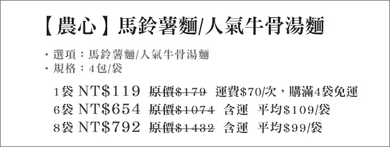 ![]() 韓國Honey Citron Tea-膠囊柚子茶 售價:266 我要購買 韓國Honey Citron Tea-膠囊柚子茶-韓國膠囊式柚子茶!來自濟州島的柚香佐上香甜可口的蜂蜜,膠囊式設計一次沖泡一顆,方便攜帶又衛生。只要266元(3盒免運)即可購得【韓國Honey Cit | ![]() 純鮮奶製作超萌水果日式手工麵包 售價:69 我要購買 純鮮奶製作超萌水果日式手工麵包-擬真度極高的超萌水果日式手工麵包,外型可愛,以新鮮純牛奶製作,製成不添加一滴水,口感綿密奶香濃厚!平均每個最低只要69元起(3個免運)即可購得純鮮奶製作超萌水果日式手工 | ![]() 嵐町目日式拉麵-套餐方案 售價:299 我要購買 嵐町目日式拉麵-套餐方案-天冷就來嵐町目吃拉麵!以新鮮食材烹調出每一道美味佳餚,拉麵湯頭濃香醇,入喉就是點滴溫暖浸心頭!只要299元起即可享用【嵐町目日式拉麵】原價最高1175元套餐方案:(A)雙人日 |
